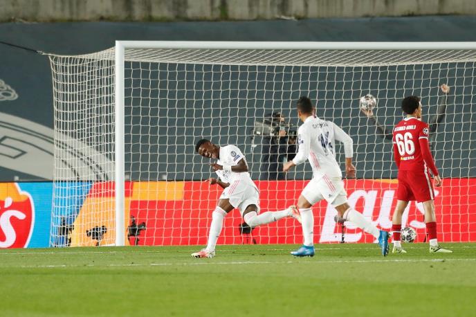 Umesto "Abbey Road" stoji "Semis Road" (put ka polufinalu), a preko pešačkog idu Karim Benzema, Toni Kros, Vinisijus Žunior i Luka Modrić.