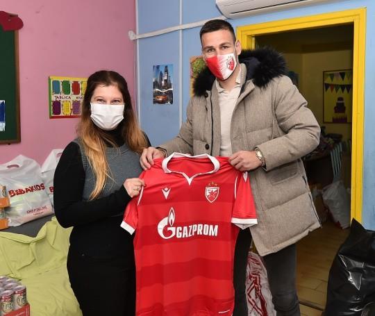 Prvotimac Zvezde Marko Gobeljić iskoristio je malo slobodnog vremena po okončanju „paklenog“ ritma utakmica da usreći mališane koji su štićenici Svratišta za decu ulice.