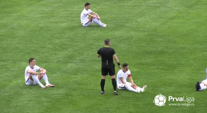 NEMA KRAJA SKANDALIMA U SRPSKOM FUDBALU! Fudbaleri Radničkog posedali na teren i prekinuli utakmicu zbog sudijskih odluka! VIDEO