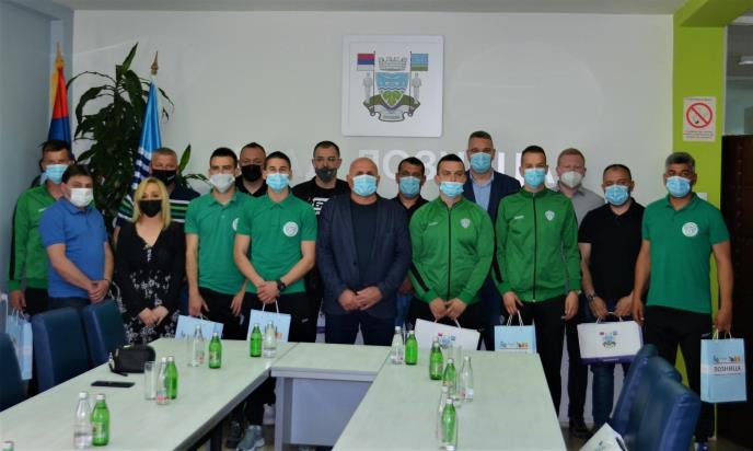 LOZNICA - Gradonačelnik Vidoje Petrović i predsednica Skupštine grada Milena Manojlović Knežević priredili su prijem u gradskoj upravi za Klub malog fudbala (KMF) Loznica koji je prošlog vikenda ostvario istorijski uspeh plasmanom u Prvu ligu Srbije, najviši takmičarski rang u futsalu. Petrović je, čestitajući im na uspehu, danas (5.4) rekao da kada se nešto želi i dobro radi, rezultati dolaze.