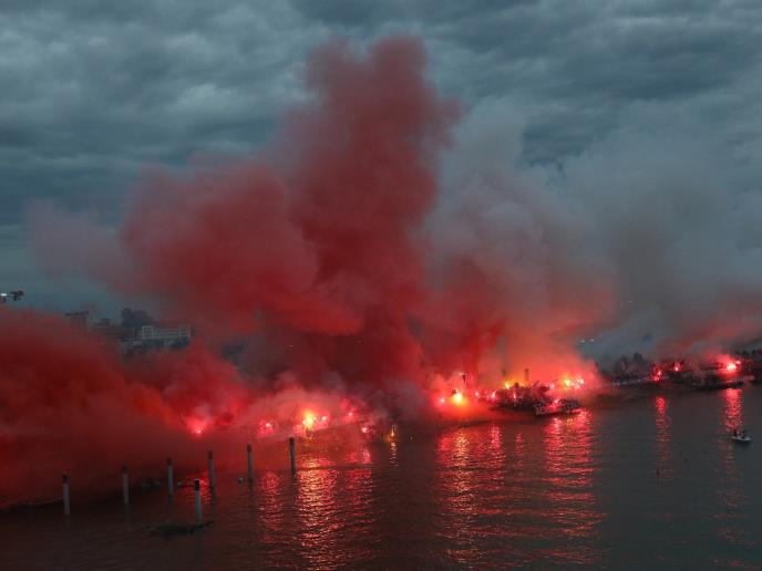 Navijači Crvene zvezde proslavili su na beogradskim rekama titulu fudbalskog prvaka Srbije na spektakularan način.