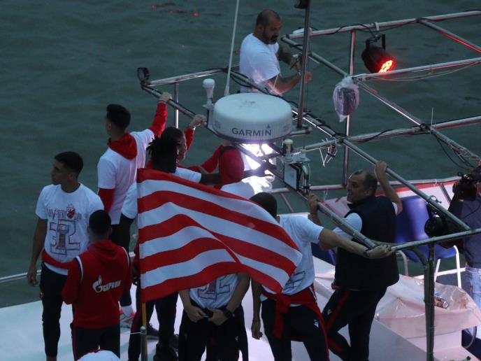 Brod na proslavi bio je preslikan onom na grbu glavnog grada - u bojama crveno-belog kluba.
