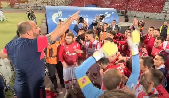 Trener Crvene zvezde Dejan Stanković posle osvajanja Kupa Srbije održao je govor svojim izabranicima ispod severne tribine.