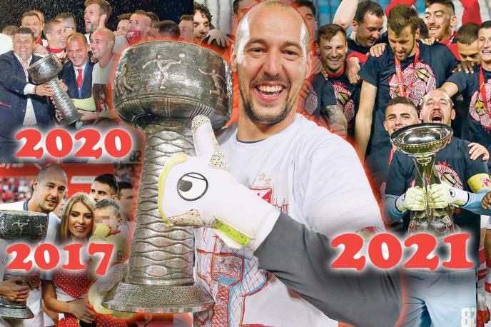 Milan Borjan, čovek zvani trofej! Upravo tako može da se opiše kapiten Crvene zvezde, golman koji je od svog dolaska na Marakanu 2017. godine, svaku sezonu završavao sa trofejom. Kako i priliči kršnom Kninjaninu, bio je junak finala Kupa Srbije protiv Partizana, kada je odbranio dva penala, Milošu Jojiću i Nikoli Štuliću.