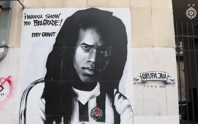 Takav je, u srcu Starog grada, i mural Edi Granta, muzičara koji je sve iznenadio tokom gostovanja u Srbiji, kada je otkrio da je vatreni fan Fudbalskog kluba Partizan.