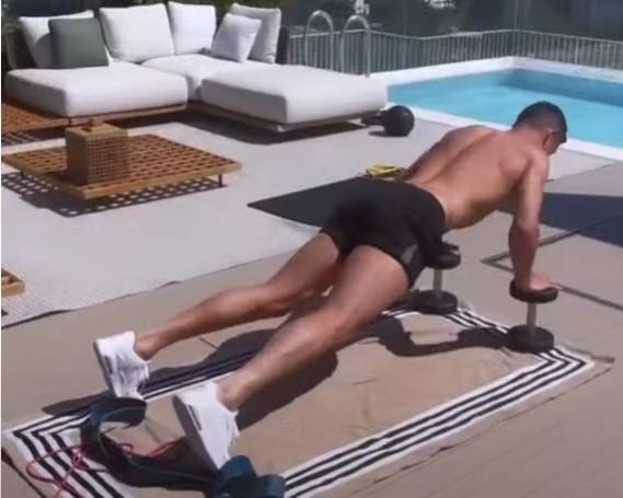 Svi zanju da je slavni Portugalac fanatik kada je vežbanje u pitanju, pa je tako njegova verenica zabeležila trenutak kada on pored bazena trenira.