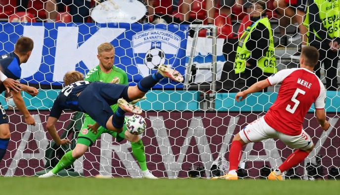 Fudbalska reprezentacija Finske pobedila je večeras u Kopenhagenu Dansku sa 1:0, u utakmici prvog kola Grupe B na Evropskom prvenstvu, koju je obeležio i prekid nakon što se danski igrač Kristijan Eriksen srušio na travu.