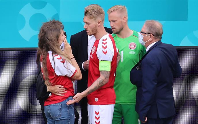 U jednom trenutku u kadru se našla i Eriksenova devojka Sabrina koja je sa suzama u očima i u velikom strahu pratila ove nemile scene. Sišla je sa tribina i pokušala da dođe do Kristijana, ali obezbđenje je sprečilo u tome.