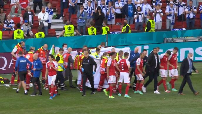 Danski fudbalski reprezentativac Kristijan Eriksen pao je tokom meča Evropskog prvenstva protiv Finske, na travu i tek posle duge intervencije lekara život mu je spasen, a utakmica, koja je bila prekinuta nastavljena je i okončana pobedom Finaca (1:0)