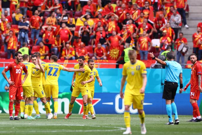 Od početka utakmice Ukrajina je kontrolisala posed, a prvu šansu imao je Ruslan Malinovski u osmom minutu, kada je sa ivice šesnaesterca šutirao, a njegov udarac je u korner odbio golman Stole Dimitrievski.