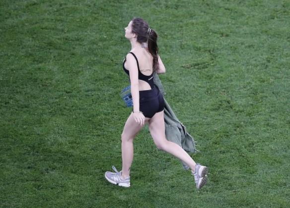 Ona je uspela da dotrči do centra terena pre nego što ju je obezbeđenje zaustavillo i privelo.
