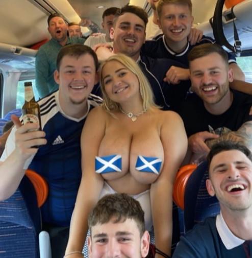 Tokom puta za London, u grupi navijača selekcije Škotske bila je i jedna dama koja je prilikom fotografisanja rešila da se obnaži.