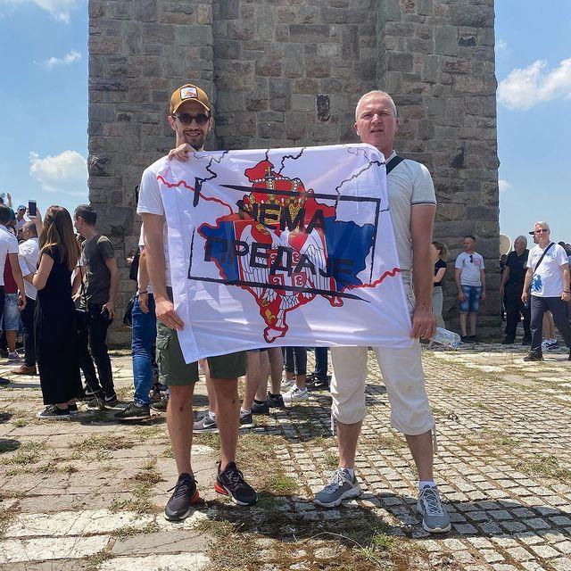 Vukašin Jovanović fotografisao se na Gazimestanu sa prijateljem, a njih dvojica drže zastavu Kosova i Metohije na kojoj piše - Nema predaje!