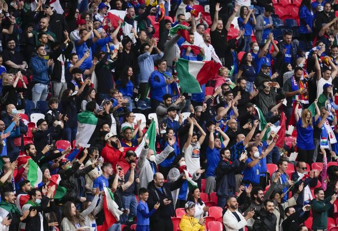 Nekoliko hiljada navijača italijanske i španske fudbalske reprezentacije sa prebivalištem u Velikoj Britaniji došlo je večeras na londonski stadion Vembli na utakmicu polufinala Evropskog prvenstva.