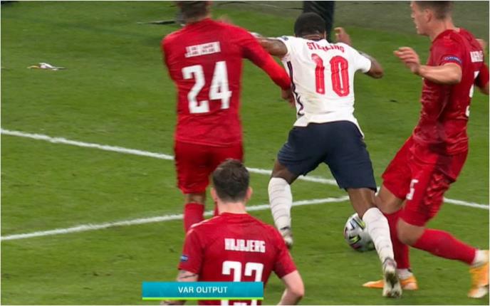 Osim što je penal bio sporan, bilo je sport zašto igra nije prekinuta pošto dok je Sterling trčao ka golu Danaca u terenu su se našle dve lopte zbog čega je sudija trebao da prekine igre.