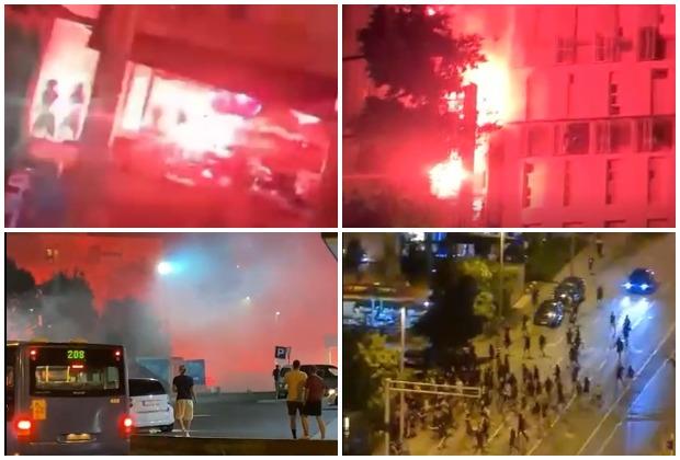 Nekoliko baklji je završilo i na terasama okolnih zgrada, pa je ceo kvart izgledao kao da je rat u pitanju.