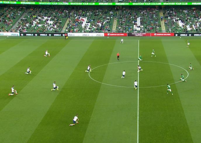 Fudbaleri Srbije kleknuli su na početku utakmice protiv Republike Irske u Dablinu.