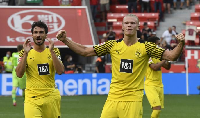 Fudbaleri Borusije Dortmund pobedili su danas u gostima ekipu Bajer Leverkuzena sa 4:3, u derbiju četvrtog kola nemačke Bundeslige.