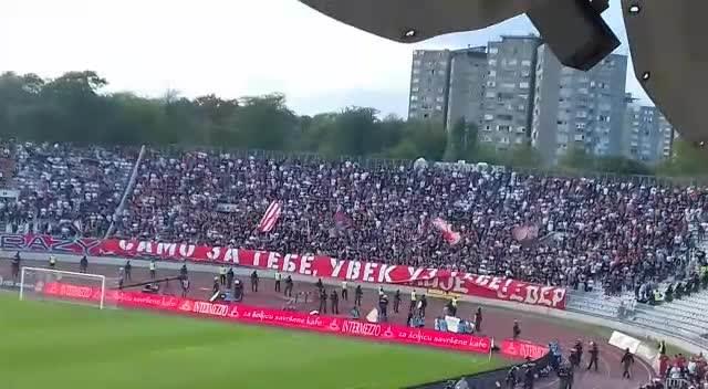 Navijači Crvene zvezde ispunili su severnu tribinu stadiona u Humskoj