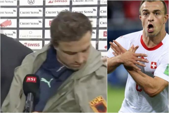 Na snimku koji se proširio internetom jasno se vidi kako muškarac tokom intervjua ogrće Šaćirija jaknom sa oznakama „UCK“, a švajcarski reprezentativac odmah skida jaknu sa sebe i spušta je na pod.