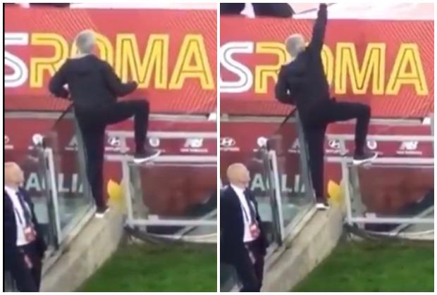 Na društvenim mrežama se pojavio snimak na kom se može videti kako je trener Rome Žoze Murinjo davao instrukcije svojim igračima nakon isključenja.
