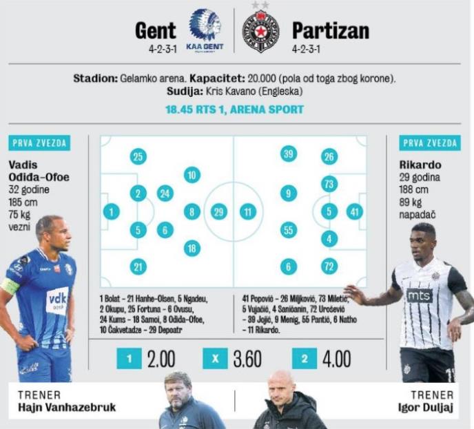 Fudbaleri Partizana igraju večeras (18.45) utakmicu u gostima protiv Genta u Ligi konferencije.
