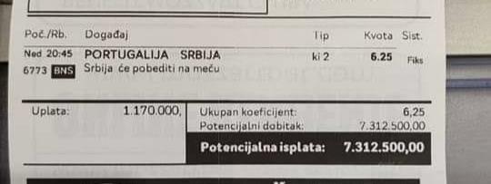 Gotovo neverovatan tiket kruži internetom, a srećni kladilac je baš verovao u pobedu Srbije.