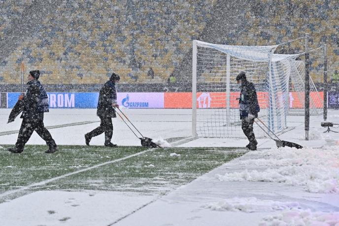 Vremenski uslovi u prestonici Ukrajine nisu nimalo prijatni. Travnata podloga je pod snežnim prekrivačem i redari rade sve što mogu da teren dovedu u kvalitetno stanje kako bi utakmica mogla da se odigra neometano.