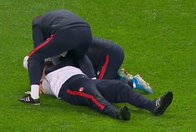 Trener crveno-belih je po završetku meča u Bragi (1:1) uleteo u teren, gde se radovao kao malo dete, klizeći na kolenima.