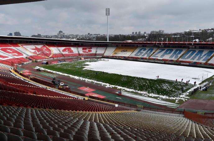 - Uprkos snegu, Crvena zvezda ima sve neophodne uslove koji omogućuju da sve bude spremno za meč u ponedeljak. Grejači terena rade od juče i održavaju podlogu u kvalitetnom stanju.