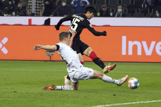 Fudbaleri Ajntrahta pobedili su večeras u Menhengladbahu domaću Borusiju sa 3:2, u utakmici 16. kola Bundeslige.
