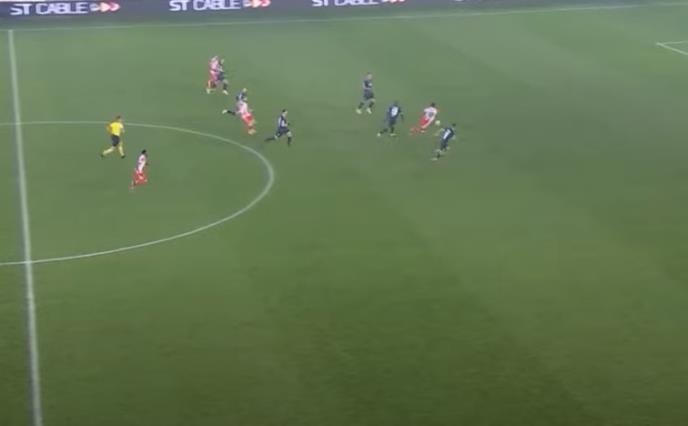 Po završetku akcije pomoćni sudija je digao ofsajd zastavicu, pa eventualni gol ne bi bio priznat.