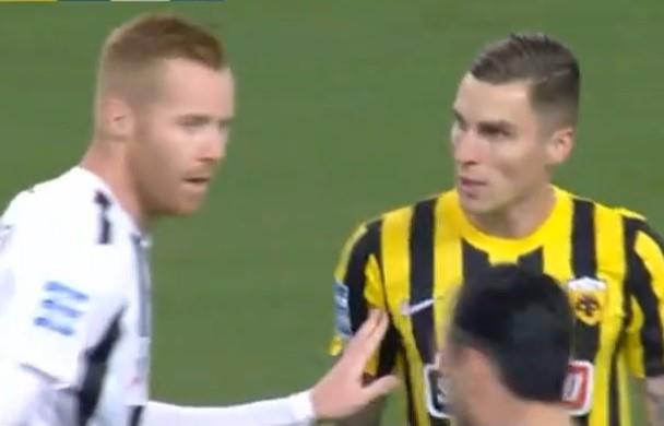 Ono što je obeležilo meč u Atini bile su nemile scene sredinom prvog poluvremena. AEK je poveo golom Ognjena Vranješa u 14. minutu, da bi gosti do izjednačenja stigli u 23. minutu golom Lazarosa Lamprua.