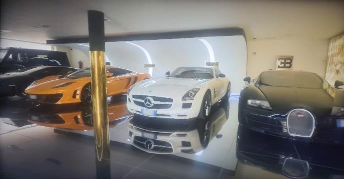 U kadru je bio njegov najvredniji auto "Bugatti Chiron" koji vredi dva miliona evra i proizveden je u samo 500 priperaka. Tu je i "McLaren Senna" napravljen u čast legendarnog asa Formule 1 koji košta milion evra. Još jedan od retkih automobila koji se nalaze u garaži je "Rolls-Royce Cullinan", zatim "Rolls-Royce Phantom Drophead", "Ferrari 599 GTO"...