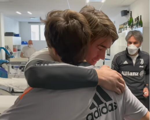 Lice Federika Kjeze na snimku jasno odaje koliko mu je stalo da vidi Dušana Vlahovića. I kod Srbina su proradile emocije, jedva je čekao da zagrli Kjezu, ali je to učinio vrlo pažljivo, pazeći na njegovo zdravstveno stanje i štake pomoću kojih se kretao.