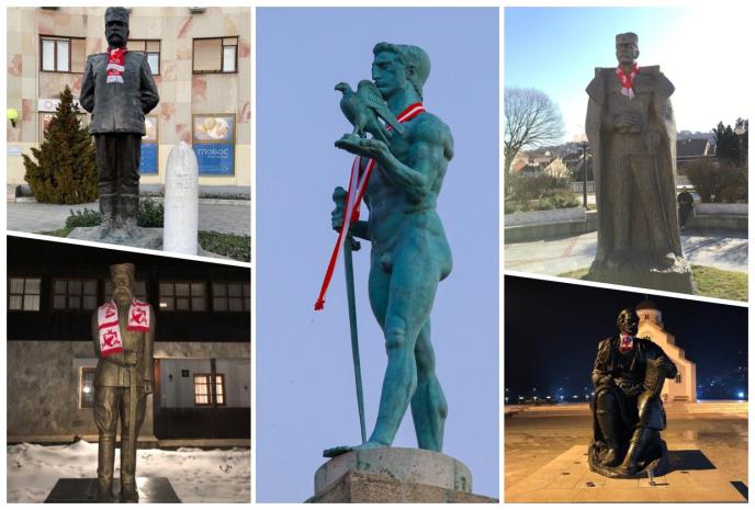 Tako je crveno-beli šal osvanuo na spomenicima vojvodama iz Velikog rata Stepi Stepanoviću u Loznici i Živojinu Mišiću u Valjevu. Zatim, piscima Petru Petroviću Njegošu i Ivi Andriću u Višegradu, generalu JVuO Dragoljubu Mihailoviću u Draževini.