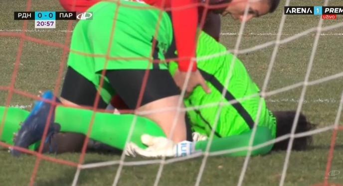 Popović je zbog teške povrede nakon jezivih scena završio utakmicu, umesto njega je na gol stao Nemanja Stevanović.