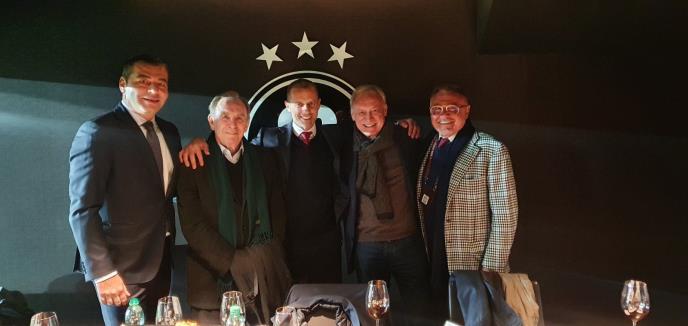 Sa njima u društvu su i Ivan Ćurković i Milorad Vučelić. Zanimljivo, predsednik Partizana meč prati tik uz prvog čoveka UEFA.