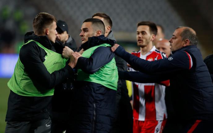 U 44. minutu na terenu je došlo do gužve između igrača, a uleteli su svi članovi stručnih štabova i rezervni fudbaleri.