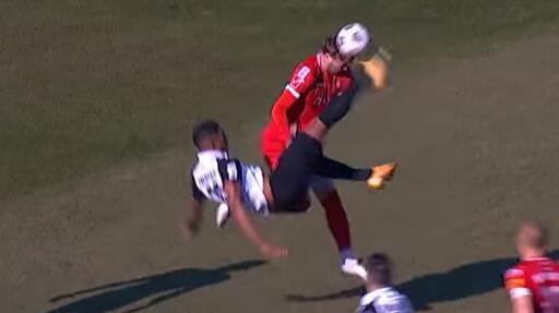 Najbolji igrač Partizana je u 30. minutu pokušao da završi akciju na atraktivan način, makazicama, ali je umesto lopte zahvatio glavu protivničkog fudbalera.