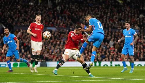 13. minut - kolosalna šansa za mančester, mladi Elanga sa par metara pogađa pravo u glavu golmana Atletika Oblaka, velika sreća za goste