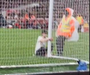 Meč Arsenala i Liverpula prekinuo je navijač koji je pokušao da se veže za gol!