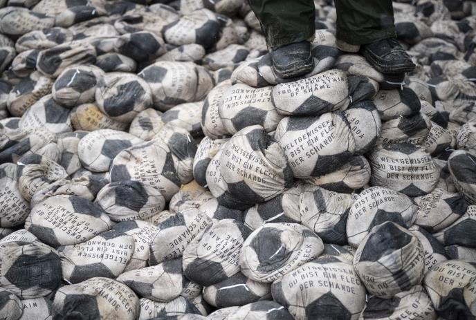 Nemački umetnik Foker-Johanes Trib prosuo je ispred FIFA 6.500 fudbalskih lopti ispunjenih peskom!
