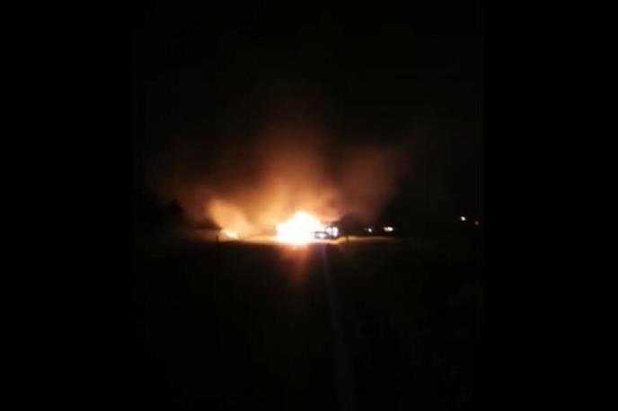 Oko 22 časa na putu Mladenovac - Topola grupa navijača koja se vraćala sa Marakane presrela je kombi i zapalila ga dok su se putnici nalazili u njemu.