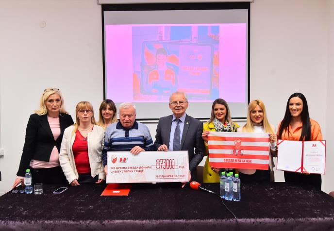 Crvena zvezda nastavlja sa humanitarnim radom, a nakon što je posetila Savez udruženja Srbije za pomoć osobama sa autizmom (214.000 dinara) i Udruženje gluvih Beograda (596.900 dinara), posle utakmica sa TSC-om i kragujevačkim Radničkim, došlo je vreme da deo novca od ulaznica sa 167. večitog derbija usmerimo u Savez slepih Srbije. Ili barem veći deo od 873.000, dok je ostatak novca bio usmeren ka ostalim udruženjima.