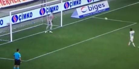 Sudija je odlučio da pokaže na belu tačku u 99. minutu kada je golman gostiju Ozčimen bio u duelu sa jednim igračem domaćeg tima.