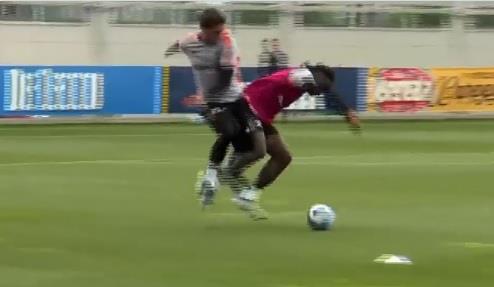 Kako se može videti na snimku koji je osvanuo na društvenim mrežama, Vlahović i Kin nisu štedeli jedan drugoga na trenintgu Stare Dame. Sve je prštalo na terenu, a mladi tamnoputi Italijan je, dok su trčali za loptom, u jednom trenutku "oduvao" Vlahovića.