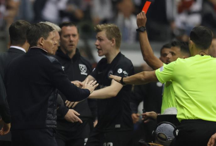 Trener fudbalera Vest Hema Dejvid Mojes izvinio se zbog incidenta i isključenja koje je dobio u revanš meču polufinala Lige Evropa protiv Ajntrahta iz Frankfurta.