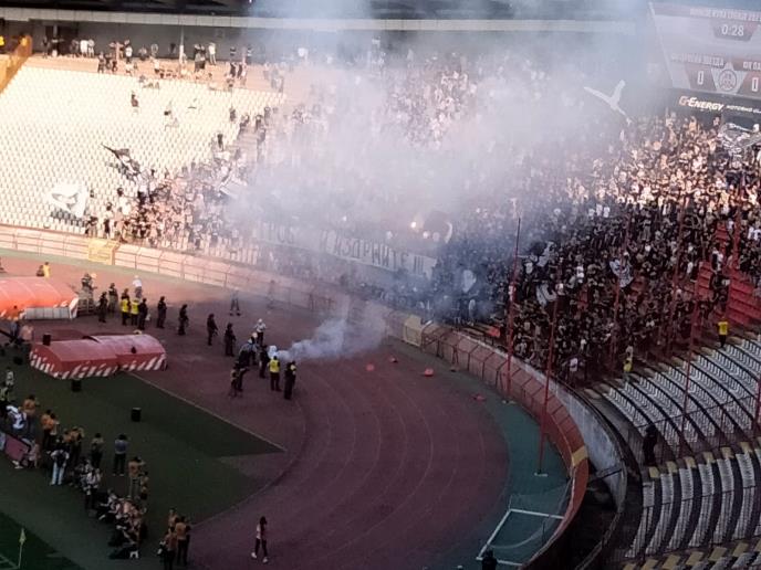 HAOS NA JUGU: Navijači Partizana gađali Borjana bakljama, policija intervenisala VIDEO