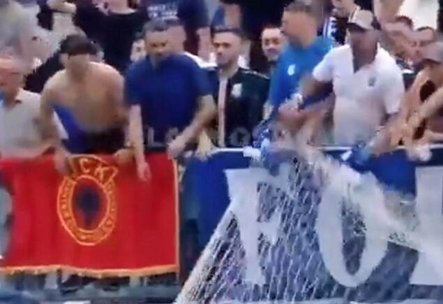 Huligani koji su ponosno ispred sebe držali zastavu zloglasne terorističke UČK (Oslobodilačka vojska Kosova) uspeli da dođu do mreže i pokidali su je.